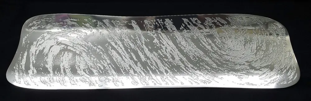 Hallmarked as collectors’ items, no two pieces are exactly alike. Made from a unique alloy, each item has the enduring beauty of silver without the drawbacks. It will not tarnish or impart a metallic taste, nor will it be affected by salad dressing, mustard or wine. It may be put in the freezer or taken straight from the oven to the table. Normal washing is the only cleaning necessary, but like any precious ware do not place in the dishwasher.
