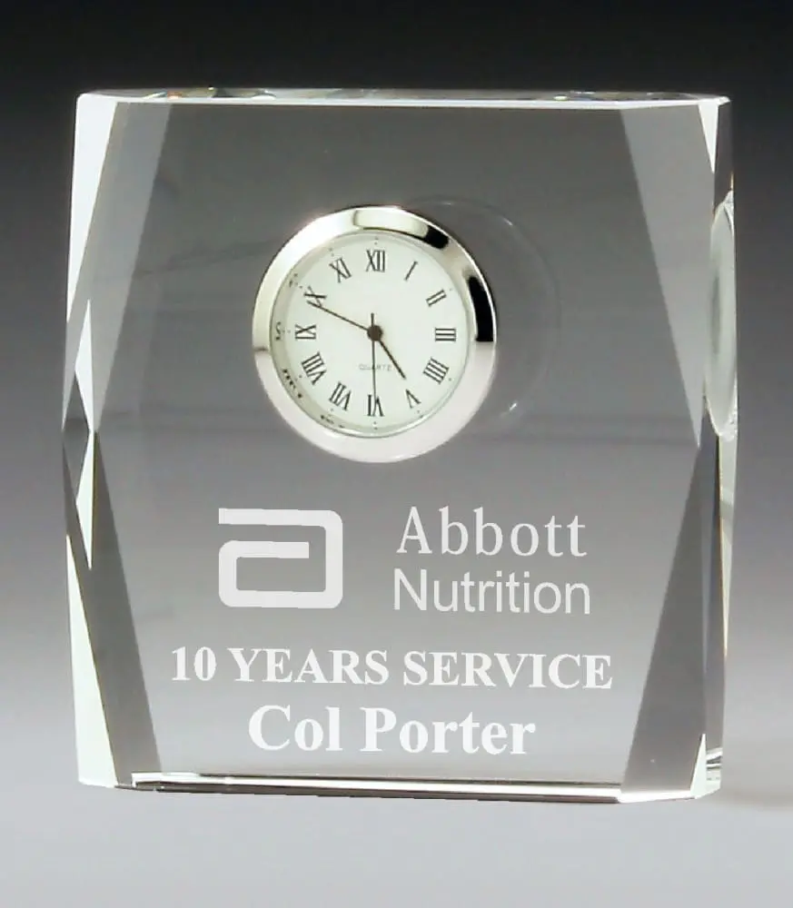 This Optical Crystal clock is a perfect gift or award for that special Achievement.